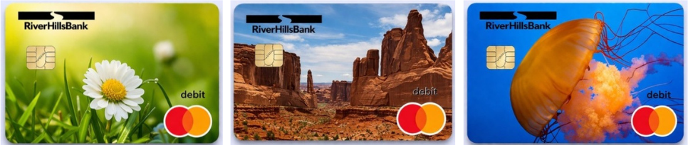 Make your debit card uniquely yours with a custom design from RiverHills Bank. Upload your favorite photo or choose from our gallery to create a card that reflects your personality and style - so every purchase feels a little more personal.